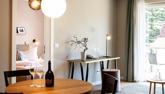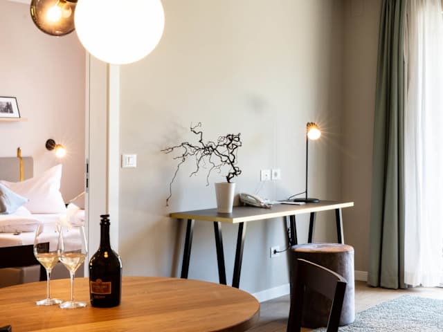 Das Hotel verfügt über 52 Nichtraucherzimmer, die als Suiten gestaltet sind und über verschiedene Annehmlichkeiten verfügen. Alle Zimmer sind klimatisiert und bieten Fußbodenheizung, einen Balkon oder eine Terrasse. Die Zimmer sind mit einem Flachbild-Sat-TV, einem Kühlschrank, einem Wasserkocher sowie einem Safe ausgestattet. Jedes Zimmer hat ein eigenes Bad mit Pflegeprodukten, Bademänteln und Föhn. Auf Wunsch stehen auch behindertenfreundliche Zimmer zur Verfügung, und Haustiere sind nach Absprache willkommen.