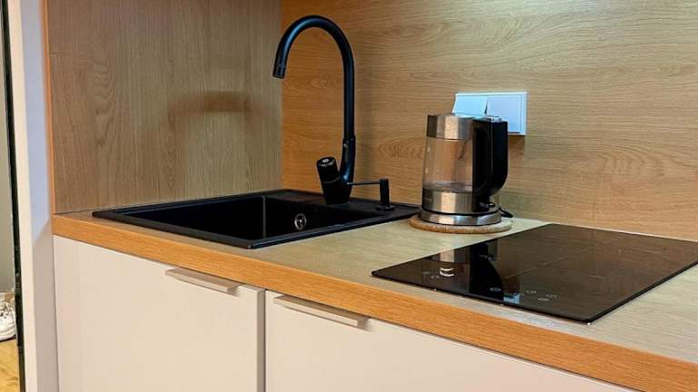 Die Ferienwohnung besteht aus einem Schlafzimmer, einer Küche, die mit einem Kühlschrank und einer Mikrowelle ausgestattet ist, sowie einem Badezimmer mit Dusche und Haartrockner. Handtücher und Bettwäsche werden bereitgestellt.