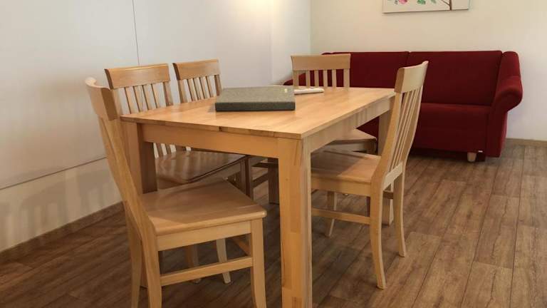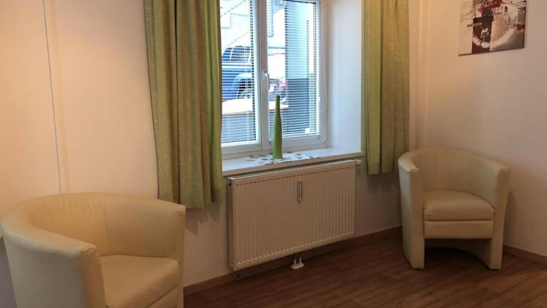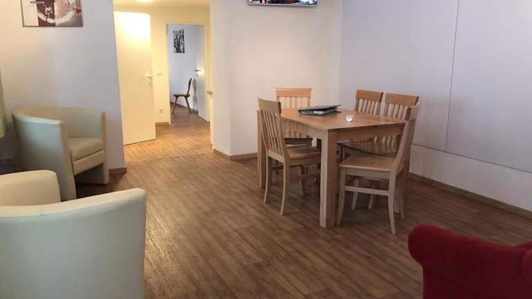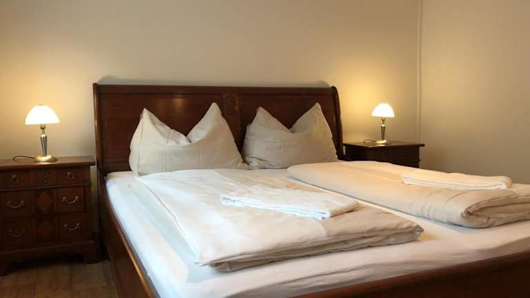 Die Ferienwohnung besteht aus einem Schlafzimmer, einem Wohnzimmer und einer voll ausgestatteten Küchenzeile, die mit einem Kühlschrank und einer Kaffeemaschine ausgestattet ist. Des Weiteren stehen ein Badezimmer mit Dusche und Haartrockner sowie Handtücher und Bettwäsche zur Verfügung.