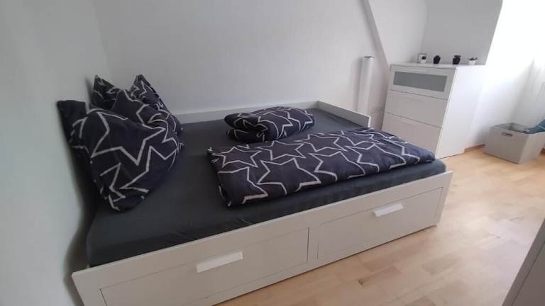 Die Ferienwohnung besteht aus einem Schlafzimmer, einem Wohnzimmer und einer voll ausgestatteten Küche mit Kühlschrank und Kaffeemaschine. Das Badezimmer ist mit einer Dusche und kostenlosen Pflegeprodukten ausgestattet. Handtücher und Bettwäsche werden bereitgestellt.