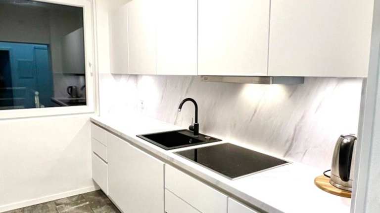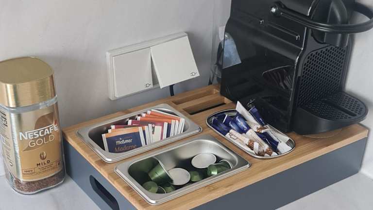 Die Unterkunft ist mit einer gut ausgestatteten Küche ausgestattet, die unter anderem einen Kühlschrank und einen Geschirrspüler umfasst. Es sind keine weiteren Informationen zu Verpflegungsmöglichkeiten vorhanden.