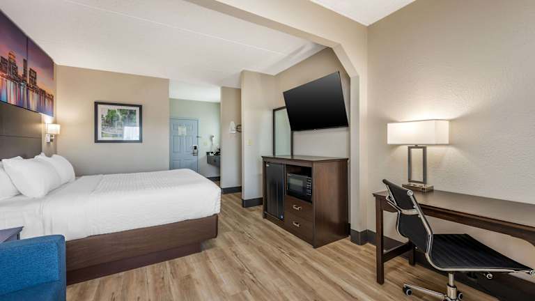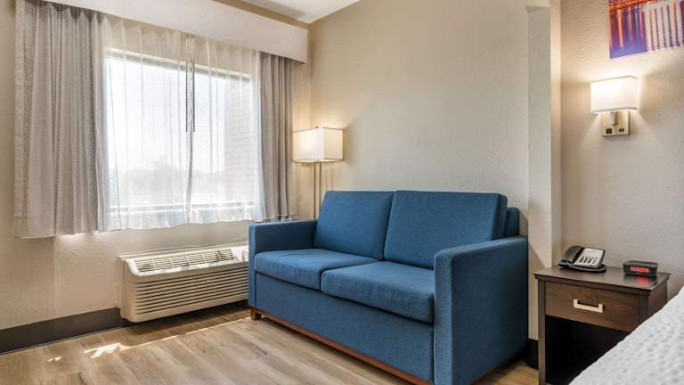 Die Zimmer verfügen über eine Klimaanlage, Heizung, einen Kühlschrank, eine Mikrowelle und eine Tee-/Kaffeemaschine. Zur Ausstattung gehören ein Schreibtisch, ein TV-Gerät und kostenloses WLAN. Nichtraucherzimmer sowie rollstuhlgerechte Optionen mit barrierefreien Badezimmern sind verfügbar. Die Badezimmer sind mit einer Dusche und Haartrockner ausgestattet.