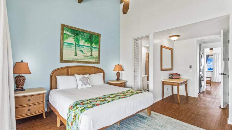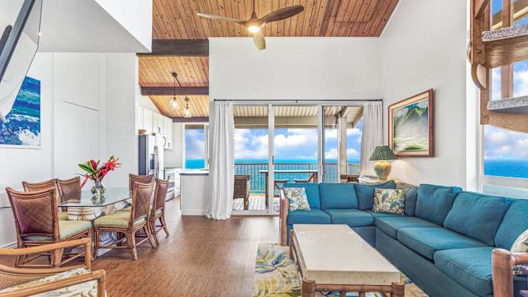 Verbringen Sie einen traumhaften Urlaub im Cliffs 8301 condo in Princeville, Hawaii. Dieses klimatisierte Apartment bietet Ihnen eine Terrasse mit Meerblick und kostenfreies WLAN. Genießen Sie den Komfort eines separaten Schlafzimmers, einer voll ausgestatteten Küche und zwei Badezimmern. Die Unterkunft liegt in der Nähe von wunderschönen Stränden und bietet Ihnen Privatparkplätze. Entdecken Sie die Schönheit von Princeville und entspannen Sie in dieser idyllischen Umgebung.