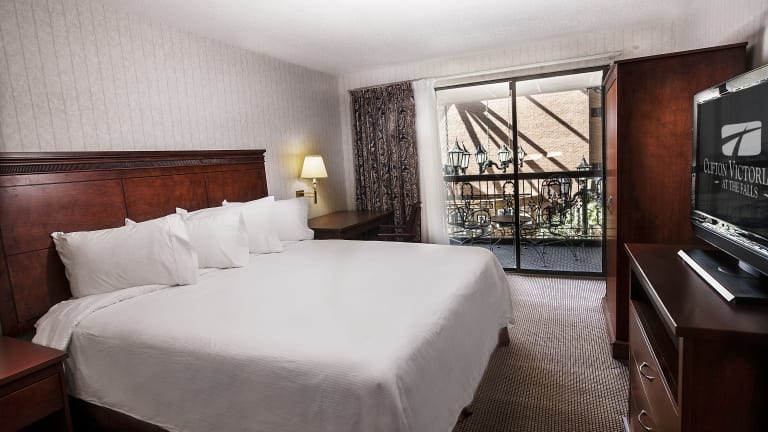 Das Clifton Victoria Inn at the Falls liegt in unmittelbarer Nähe der beeindruckenden Niagara Falls. Restaurants, Bars, Diskotheken und zahlreiche Einkaufsmöglichkeiten befinden sich direkt gegenüber dem Hotel. Die Wasserfälle American and Horseshoe, die Maid of the Mist und der wunderschöne Niagara Park sind bequem zu Fuß in ca. 5 Minuten erreichbar. Das Stadtzentrum von Niagara Falls ist etwa 20 Gehminuten entfernt.