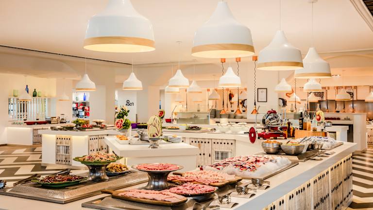 Das Club-Resort bietet 3 Restaurants, "L’Hacienda", "Las Cazuelas" und "La Estancia" und 6 Bars, "Le Soluna", "Las Velas", "Las Cazuelas", ,,La Bodega'', ,,Bar Lounge'' und "Maya Lounge". Die wohlschmeckende und kreative Küche ist verbunden mit gepflegter Tischkultur. Unsere Küchenchefs wetteifern um Neukreationen und machen ihre Küche zu einer wahren Showbühne. La Hacienda: Dieses großzügige Restaurant im Zentrum des Club-Resorts bietet Ihnen 5 Räume und eine schöne Terrasse mit Blick über den Pool. Jeder der Innenräume wurde im Stil einer kolonialen Hacienda gestatltet – mit Bücherei, Küche, Ess- und Wohnzimmer. Internationale und typisch mexikanische Buffets. Die Restaurantterrasse ist Raucherzone, alle Innenräume sind Nichtraucherzone. Tische von 2 bis 8 Personen, ausgestattet mit Kinder-Hochstühlen. Las Cazuelas: Dieses Restaurant wurde im regionalen Baustil auf Pfählen errichtet und bietet einen traumhaften Blick auf den Ozean. Tagsüber gibt es hier örtliche Spezialitäten vom Buffet. Abends steht mexikanische Fusion-Küche mit Tischservice auf der Speisekarte. Abendessen ausschließlich mit Reservierung (an der Rezeption). Nichtraucherzone. Nur die Terrasse ist Raucherzone. Tische von 2 bis 6 Personen, Kinder-Hochstühle sind verfügbar. La Estancia: In gemütlicher Party-Atmosphäre begrüßt Sie dieses Restaurant zu späten Frühstück, späten Mittagessen und Abendessen. Abends wird eine Auswahl von Grillgerichten serviert. Abends Tischservice, Tische müssen an der Rezeption reserviert werden. Das Rauchen ist auf der Terrasse erlaubt. Le Soluna: Diese Bar mit Blick auf den Pool und die Bucht von Cancun liegt im Zentrum des Club-Resorts. Sie ist klimatisiert und tagsüber ein idealer Platz. Abends verwandelt sie sich zur Lounge- und Pianobar mit behaglicher Atmosphäre. Es steht Ihnen ein Zigarren-Humidor (kostenpflichtig) zur Verfügung. Nur die Terrasse ist Raucherzone. Las Velas: Diese Bar zwischen Pool und Strand steht Ihnen den ganzen Tag zur Verfügung. Abends wird sie zur Midnight-Bar, an der Sie mit der Familie köstliche Cocktails probieren können. Es finden auch Open-Air-Filmvorführungen für Groß und Klein statt. Las Cazuelas: In der Bar haben Sie tagsüber und abends einen traumhaften Meerblick. Ein idealer Ort die Zeit mit der Familie oder Freunden zu verbringen. Raucherbereich. Bar Lounge: Exklusiv für den 5 Trident Jade Bereich. La Bodega: Unser brandneuer Weinkeller La Bodega inmitten des Resorts bietet eine große Auswahl an exklusiver Weine, Champagner und Premium Spirituosen, sowie einen VIP Tischservice für alle Restaurants und Bars des Resorts. Maya Lounge: In einer entspannten, aber eleganten Atmosphäre heißt Sie diese Bar jeden Abend herzlich willkommen.