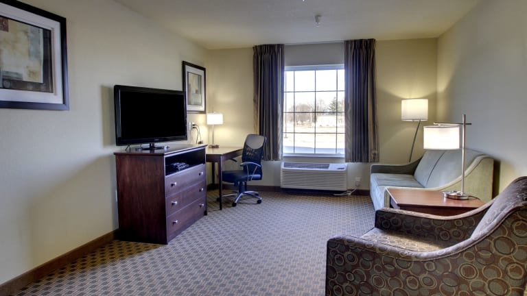 Die Zimmer im Cobblestone Inn & Suites - Rugby sind komfortabel und gut ausgestattet. Jedes Zimmer verfügt über einen Flachbildfernseher, kostenloses WLAN, eine Mikrowelle und einen kleinen Kühlschrank. Ein DVD-Player, ein Bügeleisen/-brett und ein Haartrockner sind ebenfalls vorhanden.