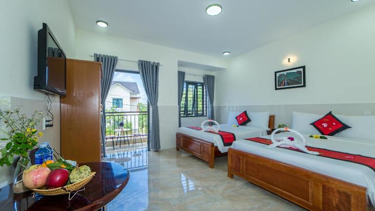 Das Hoi An Coco Village Homestay in Hoi An ist eine charmante Pension, die Ihnen einen angenehmen Aufenthalt bietet. Genießen Sie den schönen Ausblick von der Terrasse und dem Garten und nutzen Sie das kostenlose WLAN. Das freundliche Personal an der rund um die Uhr besetzten Rezeption steht Ihnen gerne zur Verfügung. Kostenlose Parkplätze sind vorhanden und ein Flughafentransfer kann gegen Gebühr arrangiert werden.