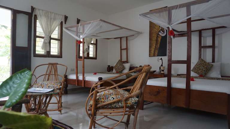 Cocolala Beach House liegt in Nungwi auf der Nungwi-Halbinsel, etwa 30 Meter vom Strand entfernt und ca. 300 Meter vom Stadtzentrum. Der Flughafen Sansibar ist rund 64 Kilometer entfernt, und ein kostenpflichtiger Flughafentransfer kann organisiert werden.