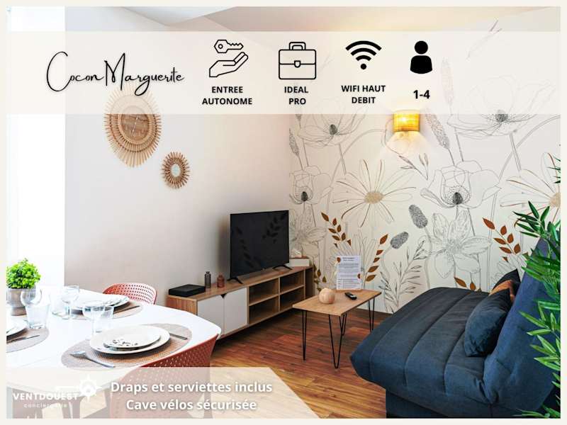 Cocon Marguerite ist ein gemütliches Appartement, ideal für Geschäftsreisende und Radfahrer. Die Unterkunft bietet einen Gartenblick und verfügt über eine rund um die Uhr besetzte Rezeption. Der Privatparkplatz steht kostenlos zur Verfügung und es besteht ebenfalls die Möglichkeit des kontaktlosen Check-in und Check-out.