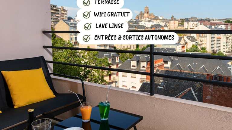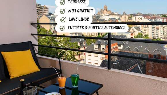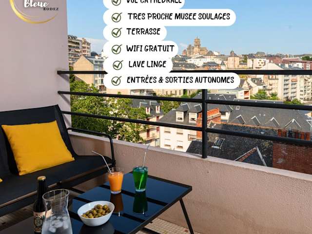 Das Apartment im Cocon avec terrasse et garage proche musée Soulages verfügt über ein Schlafzimmer, ein Badezimmer und einen gemütlichen Wohnbereich. Die Unterkunft bietet Bettwäsche und Handtücher sowie einen Flachbild-TV und einen Essbereich. Die voll ausgestattete Küche ermöglicht es den Gästen, ihre eigenen Mahlzeiten zuzubereiten. Ein Highlight des Apartments ist die Terrasse mit Blick auf die Stadt.