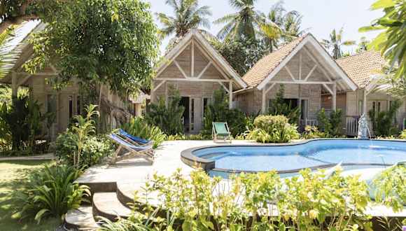 Das Coconut Village Guest House Lembongan RedPartner auf Nusa Lembongan bietet eine ideale Lage in der Nähe der Strände Paradise Beach und Jungutbatu. Hier können Sie in einer entspannten Atmosphäre Unterkunft mit einem schönen Garten und kostenfreiem WLAN genießen. Der Innenpool lädt zum Entspannen ein und das Hotel bietet auch Aktivitäten wie Billard an. Die Zimmer sind komfortabel und mit einem eigenen Bad ausgestattet. Die Unterkunft ist auch bei Radfahrern beliebt, da die Gegend viele Möglichkeiten zum Erkunden bietet.