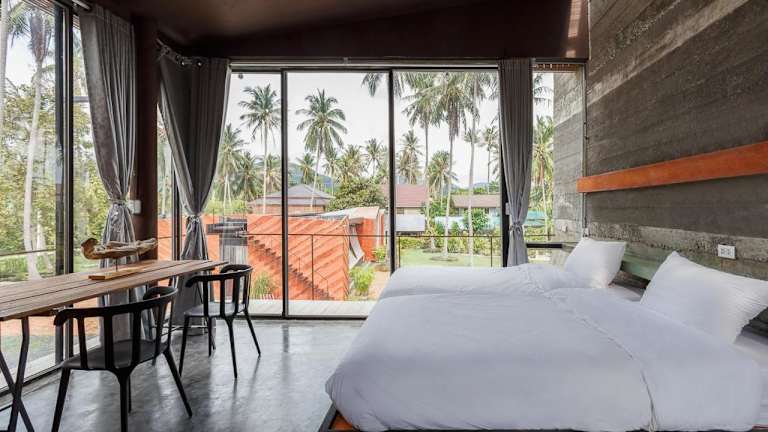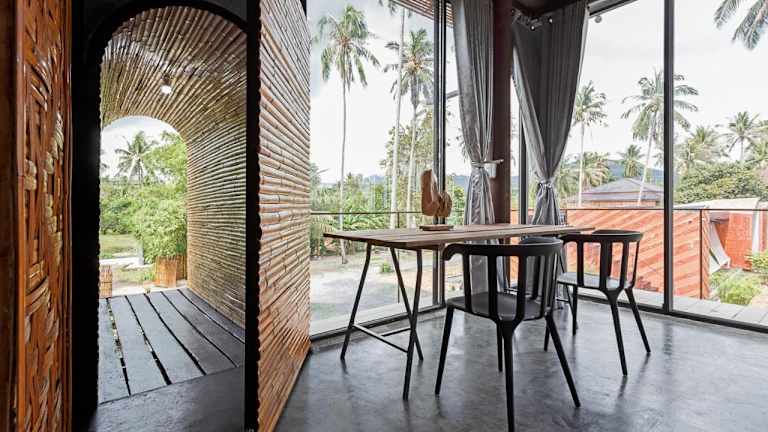 Coconutnoom Ko Phangan ist durch seine Loft-Stil Architektur und private Villen mit Meerblick geprägt. Die pflanzliche Umgebung mit einem Kokosnuss-Garten bietet eine ruhige und friedliche Atmosphäre für Gäste, die Entspannung suchen.