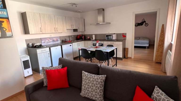 Die Ferienwohnung besteht aus einem Schlafzimmer, einem Wohnzimmer sowie einer voll ausgestatteten Küche mit Kühlschrank und Kaffeemaschine. Es gibt ein Badezimmer mit Dusche und kostenlosen Pflegeprodukten. Bettwäsche und Handtücher werden zur Verfügung gestellt. Zudem sind die Zimmer schallisoliert und Einrichtungen für behinderte Gäste sind vorhanden.