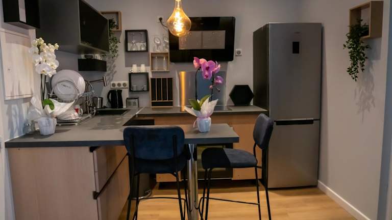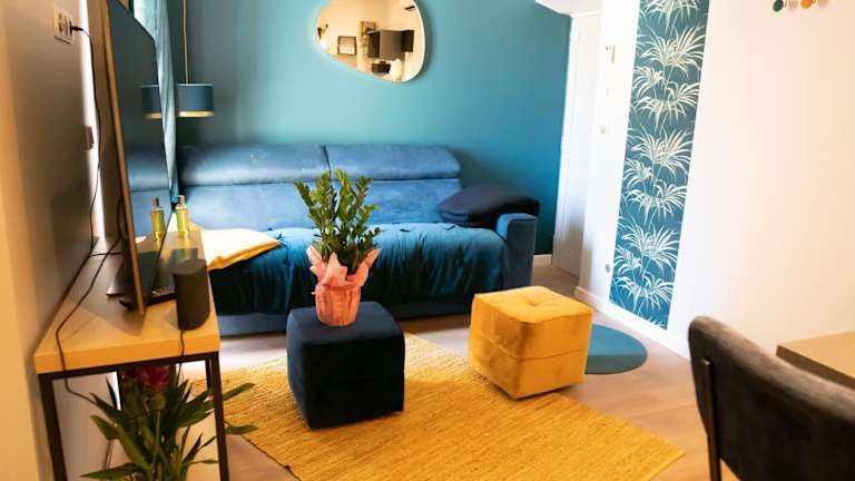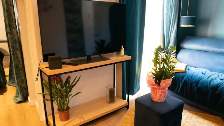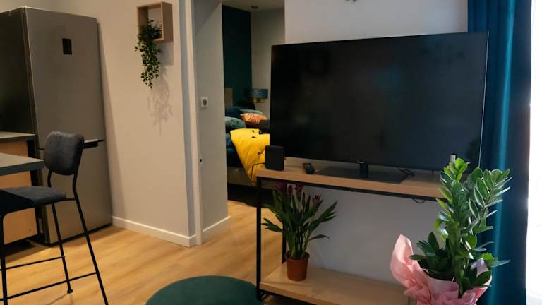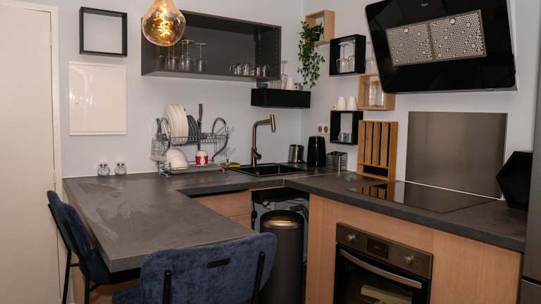 Die Ferienwohnung umfasst 1 separates Schlafzimmer, ein Wohnzimmer, eine voll ausgestattete Küche und 1 Badezimmer. Handtücher und Bettwäsche werden bereitgestellt. Die Unterkunft ist klimatisiert.