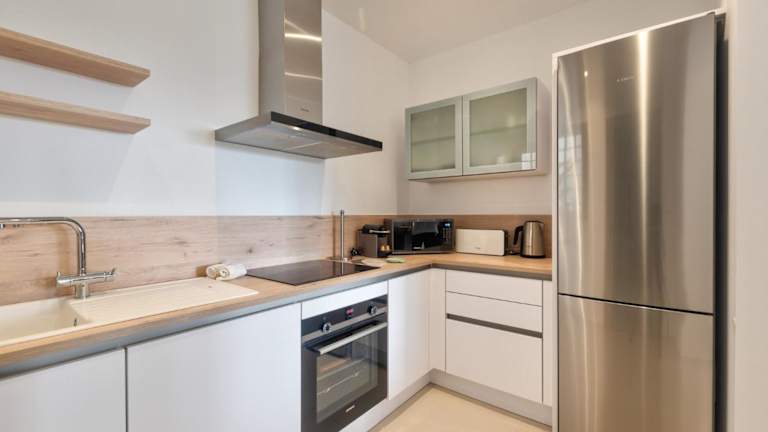 Das Ferienhaus besteht aus einem Schlafzimmer, einem Wohnzimmer und einer voll ausgestatteten Küche, die mit einem Kühlschrank und einer Kaffeemaschine ausgestattet ist. Des Weiteren stehen zwei Badezimmer mit Dusche und Haartrockner zur Verfügung. Handtücher und Bettwäsche werden bereitgestellt.