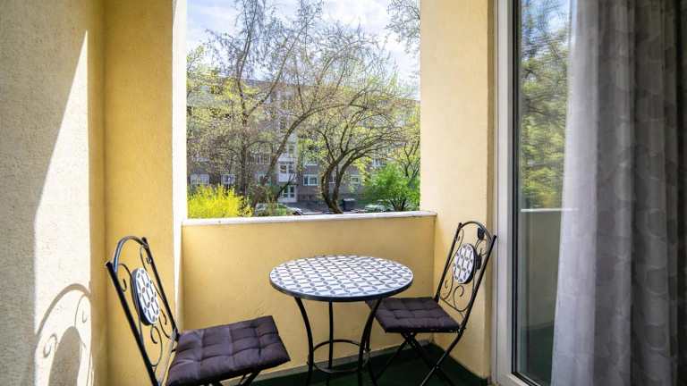 Comfort 66-- Modern 3-Room with Balcony for Families & Business bietet klimatisierte Übernachtungsmöglichkeiten und Zugang zu einem Kinderspielplatz. Die Unterkunft zeichnet sich durch eine Terrasse aus.