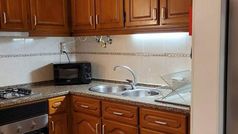 Die Ferienwohnung ist ausgestattet mit einer Küche, die einen Kühlschrank und eine Mikrowelle umfasst. Zu den weiteren Annehmlichkeiten gehören ein Flachbild-TV, ein Sitzbereich, ein Badezimmer mit Dusche sowie Handtücher und Bettwäsche.