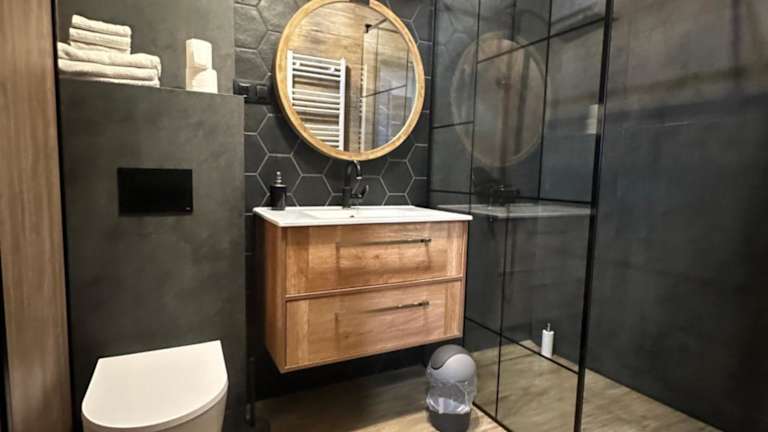 Die Ferienwohnung umfasst 3 Schlafzimmer, ein Wohnzimmer und eine voll ausgestattete Küchenzeile, die mit einem Kühlschrank und einem Wasserkocher ausgestattet ist. Es gibt 2 Badezimmer, eines mit Dusche und das andere mit Badewanne. Handtücher und Bettwäsche werden bereitgestellt, und die Unterkunft ist klimatisiert.