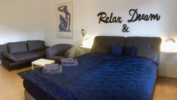 Das Apartment verfügt über einen Wohn- und Schlafraum, eine separate Küche und ein separates Bad mit großer Dusche