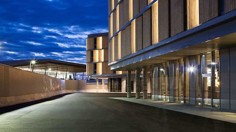Das Comfort Hotel Bergen Airport befindet sich nur 2 Gehminuten vom Flughafen Flesland entfernt und liegt etwa 17 km von der Universität Bergen und 18 km vom Stadtzentrum von Bergen entfernt. Das Aquarium von Bergen ist etwa 20 km entfernt und die Kirche Fantoft Stave erreichen Sie nach 12 km. Die Lage des Hotels macht es zu einem idealen Ausgangspunkt, um die Stadt und ihre Umgebung zu erkunden.