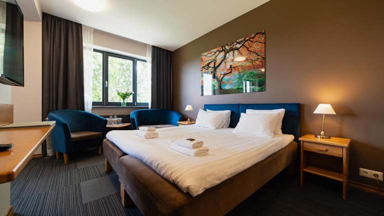 Die Zimmer im Comfort Hotel Kuldiga sind modern und komfortabel eingerichtet. Jedes Zimmer verfügt über einen Flachbild-Kabel-TV und ein eigenes Badezimmer. Einige Zimmer bieten zudem eine Terrasse, auf der Sie entspannen können. Ein Kleiderschrank und ein gemütlicher Sitzbereich gehören ebenfalls zur Ausstattung der Zimmer.