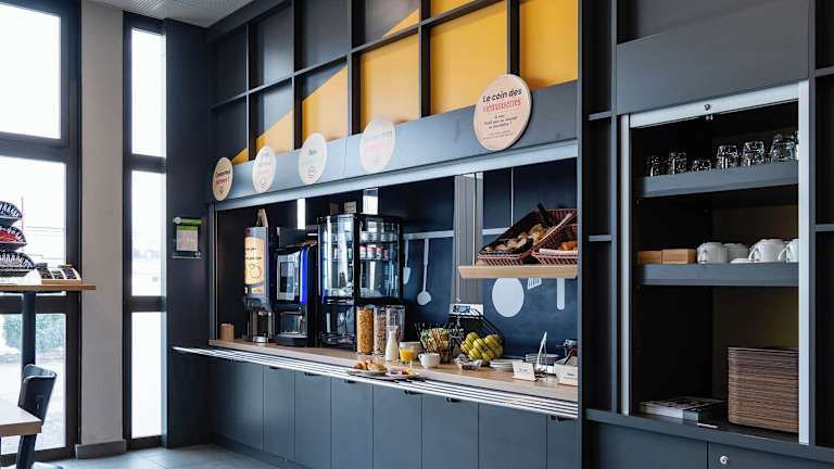 Im Hotel wird ein leckeres Frühstück angeboten, um den Tag gut gestärkt zu beginnen. Gäste können auch das hoteleigene Café nutzen, um sich mit Snacks und Getränken zu versorgen.