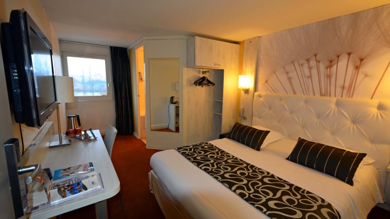 Das Logis Hotel Restaurant des Lacs Paris Sud bietet 37 Zimmer mit einer einfachen und funktionalen Einrichtung. Die Zimmer verfügen über kostenloses WLAN und sind mit einem Schreibtisch, einem Telefon und einem TV-Gerät mit Satelliten- / Kabelempfang ausgestattet. Im Badezimmer stehen Ihnen ein Haartrockner und kostenlose Kosmetikartikel zur Verfügung.
