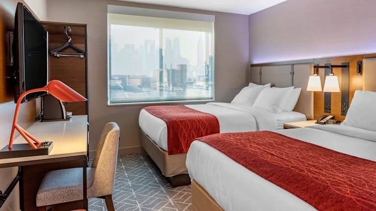 Die Zimmer des Comfort Inn JFK Airport sind mit einem Doppelbett, einem Queensize-Bett oder einem Kingsize-Bett ausgestattet. Zu den Annehmlichkeiten in den Zimmern zählen eine Heizung, Klimaanlage, ein Schreibtisch, ein Sitzbereich, ein Safe, eine Tee- und Kaffeemaschine, ein Fernseher und kostenfreies WLAN. Die Badezimmer sind mit einer Dusche und einem Haartrockner ausgestattet. Es stehen sowohl Nichtraucher- als auch Raucherzimmer zur Verfügung.