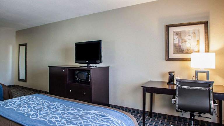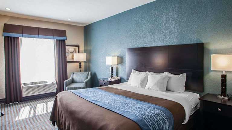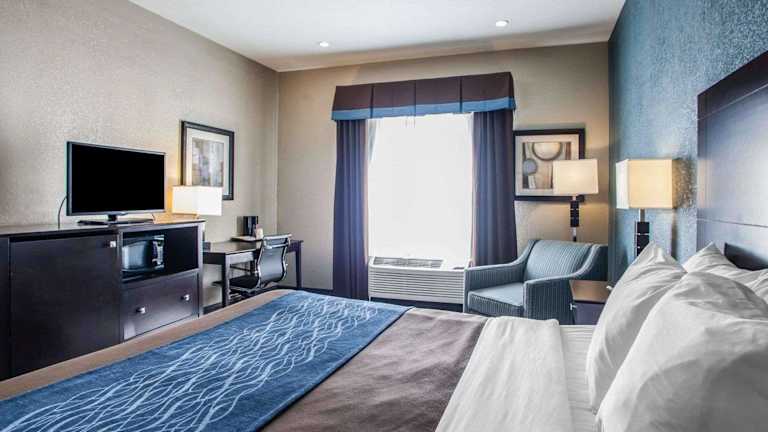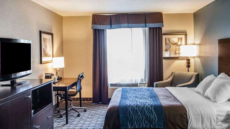 Das Comfort Inn Lees Summit bietet 65 Nichtraucherzimmer, die den Gästen einen komfortablen Aufenthalt bieten. Die Zimmer sind gut ausgestattet und verfügen über Annehmlichkeiten wie einen 32-Zoll-LCD-Flachbild-Kabel-TV, einen Schreibtisch, einen Kühlschrank, eine Mikrowelle, eine Kaffeemaschine, einen Haartrockner sowie ein Bügeleisen/-brett. Die geräumigen Suiten sind mit einem Schlafsofa ausgestattet. Einige Zimmer verfügen über eine Wet Bar und eine Whirlpool-Badewanne.