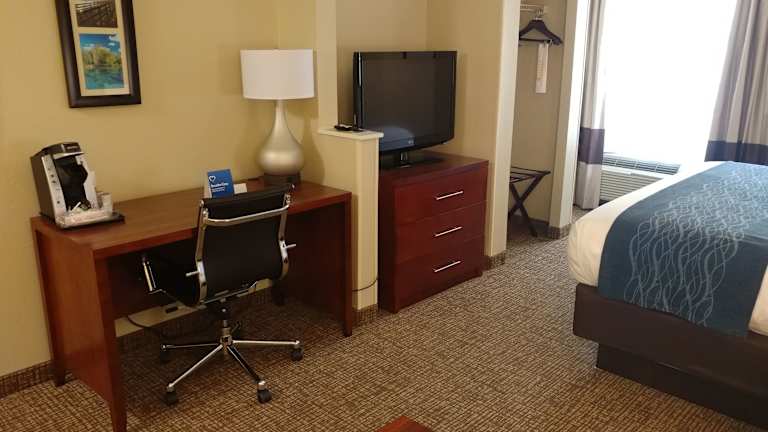 Die Zimmer im Comfort Inn sind komfortabel und mit modernen Annehmlichkeiten ausgestattet. Jedes Zimmer verfügt über einen Flachbild-Kabel-TV, kostenfreies WLAN und einen Schreibtisch. Eine Mikrowelle, ein Kühlschrank und eine Kaffeemaschine sind ebenfalls vorhanden, um den Gästen den Aufenthalt so angenehm wie möglich zu gestalten. Es gibt auch geräumige Suiten mit Schlafsofas für zusätzlichen Komfort.