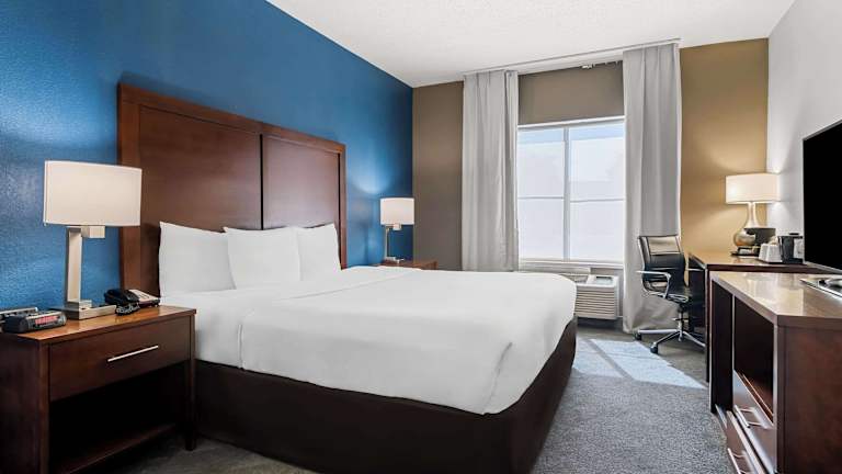 Das Comfort Inn & Suites near Tinley Park Amphitheater bietet insgesamt 65 Zimmer. Es verfügt über Annehmlichkeiten wie einen Aufzug und einen Outdoor- sowie einen Indoor-Pool. Zur weiteren Ausstattung gehören ein Konferenzraum, ein Businesscenter und ein freundliches Personal an der Rezeption, das jederzeit behilflich ist. WLAN steht für die Gäste gegen Gebühr zur Verfügung, während der Zugang im Zimmer kostenlos ist. Rollstuhlgerechte Einrichtungen sind vorhanden, und der Parkplatz kann kostenfrei, aber unbewacht genutzt werden.