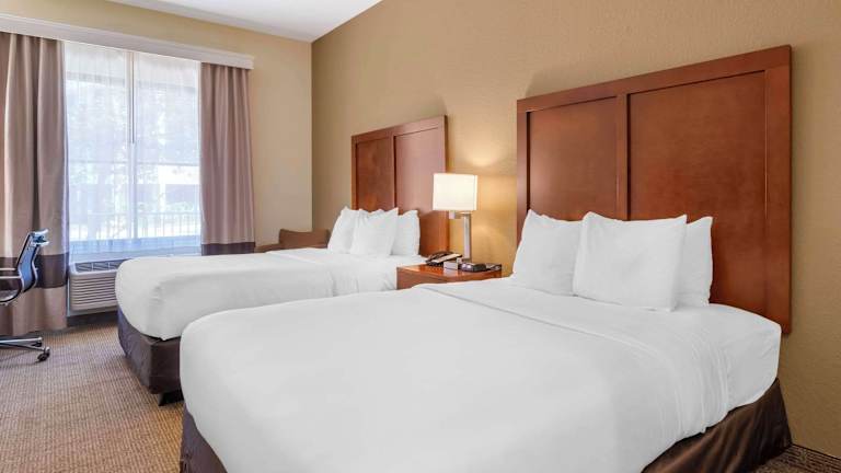 Die klimatisierten Zimmer im Comfort Inn & Suites sind gemütlich und mit dunklen Holzmöbeln eingerichtet. Jedes Zimmer verfügt über einen Flachbild-Kabel-TV, eine iPod-Dockingstation, einen Kühlschrank und Kaffee- und Teezubehör. Für zusätzlichen Komfort stehen den Gästen eine Mikrowelle und eine Whirlwanne zur Verfügung.