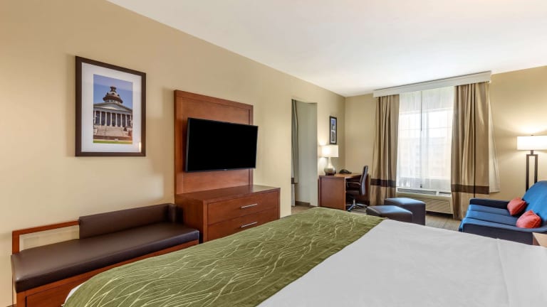 Das Comfort Inn & Suites Orangeburg bietet 69 Zimmer und verschiedene Annehmlichkeiten für einen komfortablen Aufenthalt. Die Unterkunft ist mit einem Aufzug, einer Rezeption, einem Hotel- und Zimmerservice, Wäscheservice und einem Konferenzraum ausgestattet. Zu den Serviceleistungen gehören ein Businesscenter, Münzwäscherei, und Hilfe bei der Buchung von Ausflügen. Das Haus bietet auch rollstuhlgerechte Einrichtungen.