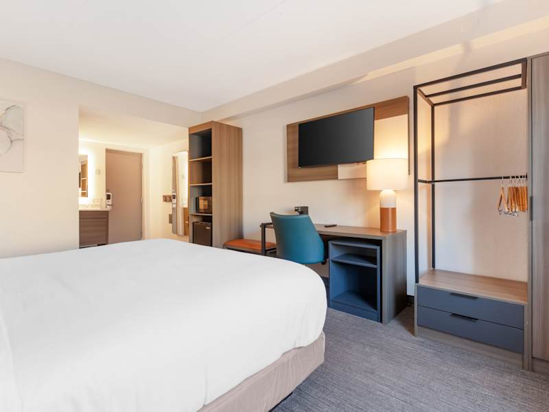 Die Zimmer sind mit einem Doppelbett ausgestattet und verfügen über einen Kühlschrank sowie eine Tee- und Kaffeemaschine zur Selbstversorgung. Weitere Annehmlichkeiten sind ein Fernseher, ein Telefon, WLAN und ein eigenes Bad mit Dusche und Haartrockner. Rollstuhlgerechte Zimmer sind ebenfalls verfügbar.