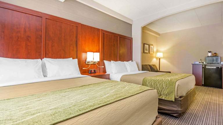Das Comfort Inn & Suites bietet insgesamt 73 Zimmer und ist mit Aufzügen sowie behindertengerechten Einrichtungen ausgestattet. Zu den Annehmlichkeiten gehören ein 24-Stunden-Sicherheitsdienst, ein Business-Center und ein Wäscheservice. Das freundliche Personal steht für Fragen zur Verfügung und es gibt sowohl eine Garage (gegen Gebühr) als auch einen Parkplatz (kostenlos). WLAN ist für die Gäste im gesamten Hotel verfügbar.