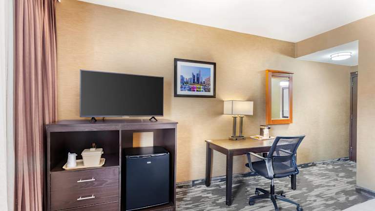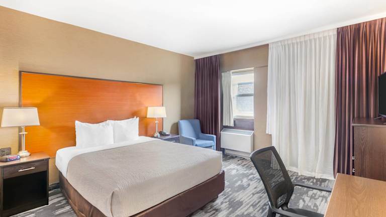 Die 99 Nichtraucherzimmer im Quality Inn Toronto Airport bieten den Gästen einen angenehmen Aufenthalt. Das freundliche Personal an der Rezeption steht Ihnen bei allen Fragen zur Verfügung und verschiedene Einrichtungen und Serviceleistungen wie eine Gepäckaufbewahrung, ein Geldautomat und ein TV-Raum sorgen für zusätzlichen Komfort. WLAN ist in den öffentlichen Bereichen kostenlos verfügbar und das Hotel bietet auch einen Transferservice und einen Wäscheservice.
