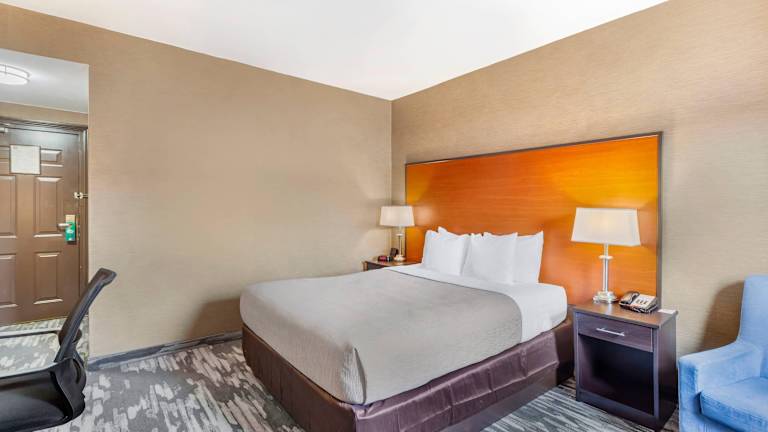 Das Quality Inn Toronto Airport ist ein Hotel in Mississauga, das seinen Gästen ein kostenloses tägliches Frühstück und kostenloses WLAN bietet. Es verfügt über eine günstige Lage in der Nähe des internationalen Flughafens Toronto-Pearson und bietet einen kostenlosen Flughafentransfer. Die Innenstadt von Toronto ist vom Hotel aus leicht erreichbar. Das Hotel bietet zudem Annehmlichkeiten wie ein Fitnesscenter, ein Restaurant und eine Lounge.