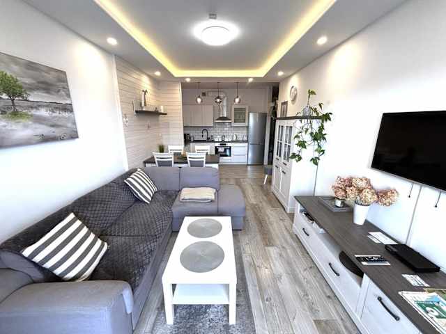 Die Ferienwohnung verfügt über ein Schlafzimmer, ein Wohnzimmer, einen Flachbild-TV, eine gut ausgestattete Küche mit Kühlschrank und Geschirrspüler sowie ein Badezimmer mit Dusche. Die Unterkunft bietet zudem eine Terrasse mit Gartenblick. Handtücher und Bettwäsche sind vorhanden und werden gemäß örtlichen Vorschriften gereinigt.