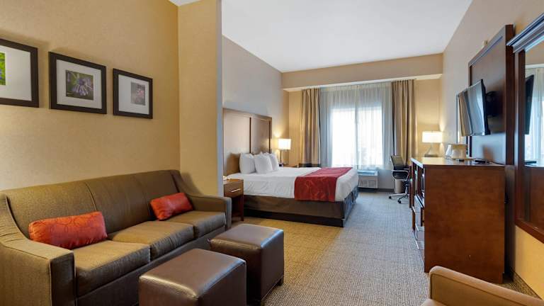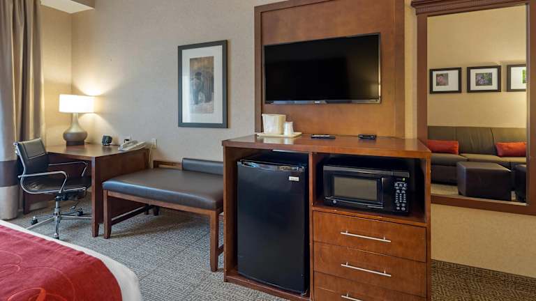 Das Comfort Suites Anchorage International Airport Hotel verfügt über 78 Nichtraucherzimmer auf 3 Etagen, die mit einem Aufzug erreichbar sind. Alle Zimmer sind gut ausgestattet und verfügen über Annehmlichkeiten wie Klimaanlage, Kühlschrank, Mikrowelle, Kaffeemaschine, Flachbild-TV, Schreibtisch, Haartrockner und Bügeleisen/-brett. Sie können auch Ihre elektronischen Geräte mit den Ladegeräten mit AC- und USB-Anschlüssen aufladen. Zimmer mit Verbindungstür sind auf Anfrage erhältlich.