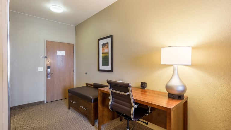 Die Comfort Suites Burlington verfügen über insgesamt 86 Nichtraucherzimmer, die über drei Etagen verteilt sind und mit einem Aufzug erreichbar sind. Das freundliche Personal an der Rezeption steht Ihnen gerne für Fragen zur Verfügung. Zur Ausstattung gehören ein Safe, ein Geldautomat und kostenfreies WLAN. Das Hotel bietet auch rollstuhlgerechte Einrichtungen. Es gibt einen Kamin, der eine gemütliche Atmosphäre schafft, sowie einen Souvenirshop und ein Spielzimmer. Parkplätze stehen gegen Gebühr zur Verfügung.