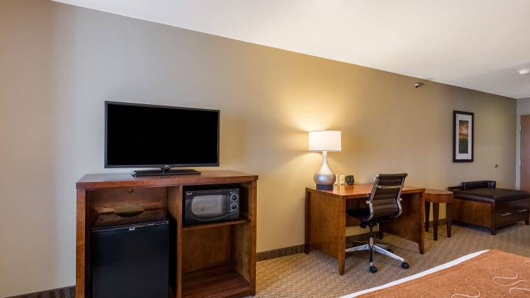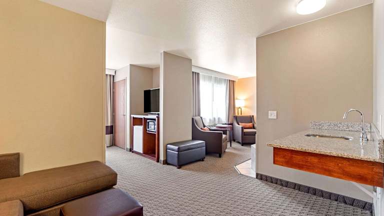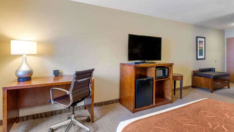Das Comfort Suites Hotel in Burlington bietet einen komfortablen Aufenthalt mit zahlreichen Annehmlichkeiten. Entspannen Sie im beheizten Innenpool oder nutzen Sie das kostenfreie WLAN. Die Zimmer sind gut ausgestattet und verfügen über Sat-TV, einen Kühlschrank und eine Mikrowelle. Einige Zimmer haben sogar eine Whirlpool-Badewanne. Genießen Sie das kostenlose warme Frühstück und erkunden Sie die Umgebung, wie den Crapo Park oder die Snake Alley.