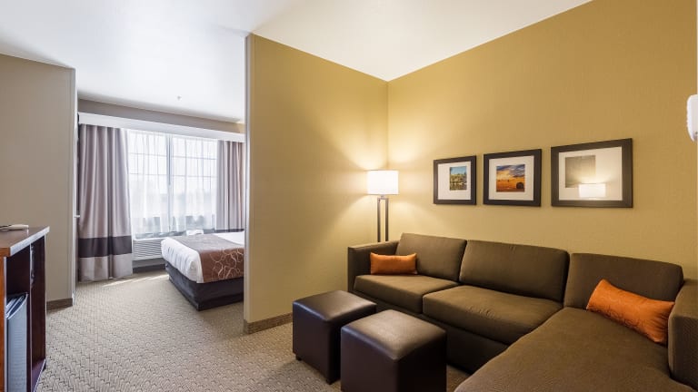 Das Comfort Suites Hotel bietet ein Restaurant und einen Speiseraum. Sie können zwischen Übernachtung inklusive Frühstück oder Halbpension wählen. Das Frühstück wird als Buffet serviert und beinhaltet unter anderem Eier, Waffeln und frisches Obst.