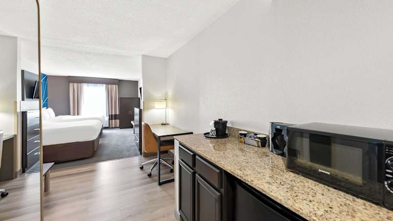 Comfort Suites Columbus bietet 65 Nichtraucherzimmer, einen Aufzug und eine Rezeption. Zu den Annehmlichkeiten zählen unter anderem ein Safe, ein Zeitungskiosk, Zimmerservice, ein Businesscenter und eine Münzwäscherei. WLAN ist kostenfrei verfügbar. Rollstuhlgerechte Einrichtungen sind vorhanden. Ein Souvenirshop ist ebenfalls vorhanden. Gäste können kostenlos auf dem Parkplatz des Hotels parken. Es gibt Innen- und Außenpools sowie ein Fitnessstudio.