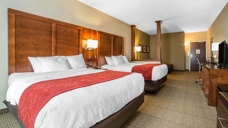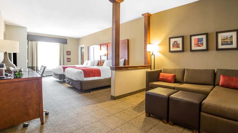 Die Zimmer im Comfort Suites Moab sind komfortabel und gut ausgestattet. Jedes Zimmer verfügt über kostenfreies WLAN, einen Schreibtisch, einen Flachbild-TV, eine Mikrowelle, einen kleinen Kühlschrank und ein eigenes Badezimmer. Es gibt auch rollstuhlgerechte Zimmer mit barrierefreien Bädern.