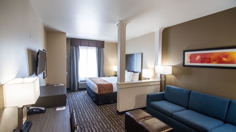 Die Zimmer im Comfort Suites Northwest Houston At Beltway 8 sind komfortabel eingerichtet und bieten Annehmlichkeiten wie einen Schreibtisch, einen Flachbild-TV und ein eigenes Badezimmer. Das Hotel bietet auch einen Zimmerservice und WLAN.