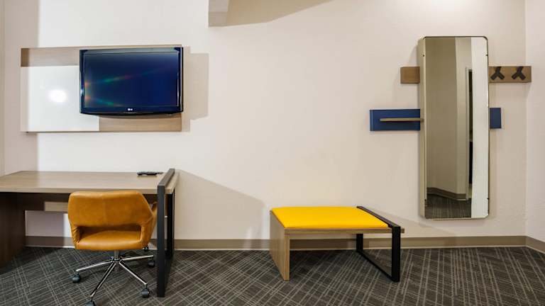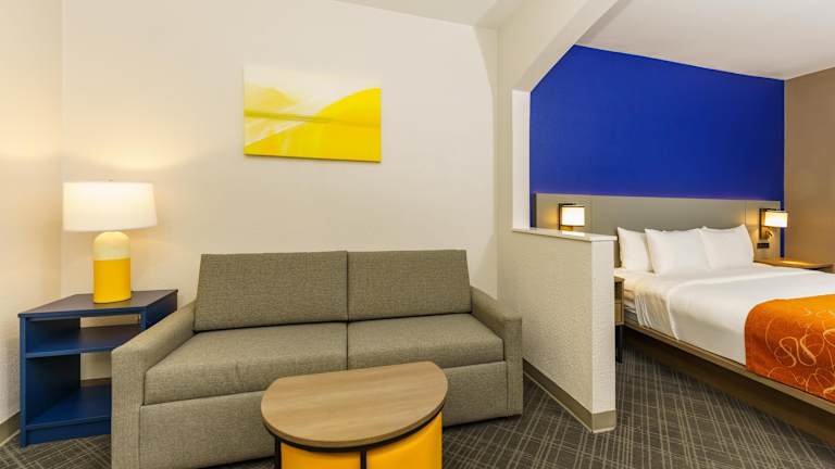 Die 79 Nichtraucherzimmer des Comfort Suites University Drive Hotels erstrecken sich über 3 Etagen und sind bequem mit einem Aufzug erreichbar. Die Zimmer sind mit Annehmlichkeiten wie Klimaanlage, Heizung, Mikrowelle, Kaffeemaschine und Fernseher ausgestattet. Ein Schreibtisch und kostenfreies WLAN ermöglichen es den Gästen, bequem zu arbeiten und mit der Außenwelt in Verbindung zu bleiben. Einige Zimmer bieten auch rollstuhlgerechte Einrichtungen und barrierefreie Badezimmer.