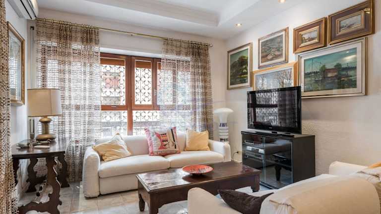 Die Ferienwohnung verfügt über zwei Schlafzimmer, ein Wohnzimmer, eine voll ausgestattete Küche mit Kühlschrank und Kaffeemaschine sowie zwei Badezimmer mit Bidet und Dusche. Zur Ausstattung zählen zudem ein Flachbild-TV und ein Balkon. Klimaanlage sowie WLAN sind ebenfalls vorhanden.