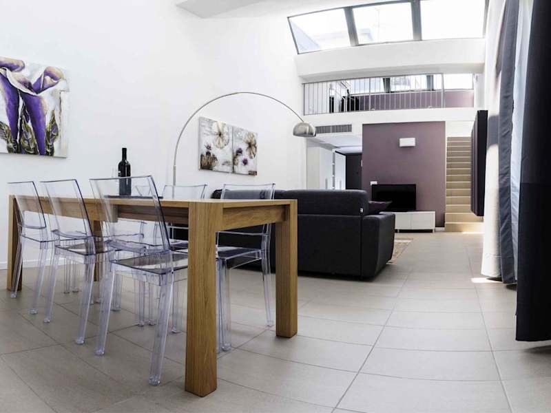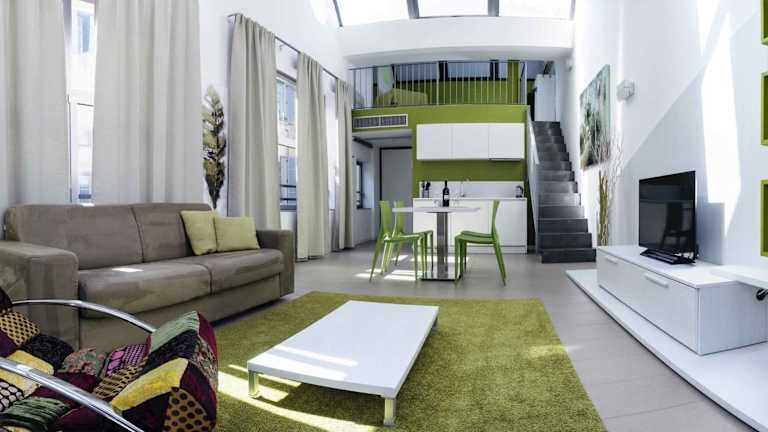 Die Studios im ComoLoft sind modern und komfortabel eingerichtet. Sie verfügen über eine voll ausgestattete Küchenzeile, in der Sie Ihre eigenen Mahlzeiten zubereiten können, sowie einen geräumigen Wohnbereich mit Sat-TV. Der Schlafbereich befindet sich auf einem Zwischengeschoss, was dem Raum eine gemütliche Atmosphäre verleiht. Alle Studios sind klimatisiert und bieten kostenfreies WLAN.