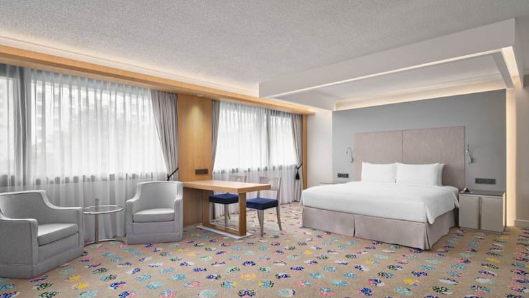 Die eleganten Zimmer im Concorde Hotel Singapore sind modern eingerichtet und verfügen über große Fenster, die viel Tageslicht hereinlassen. Jedes Zimmer ist mit einem 32-Zoll-Flachbild-TV, einem Safe und einem bequemen Sessel ausgestattet. WLAN ist kostenlos verfügbar.
