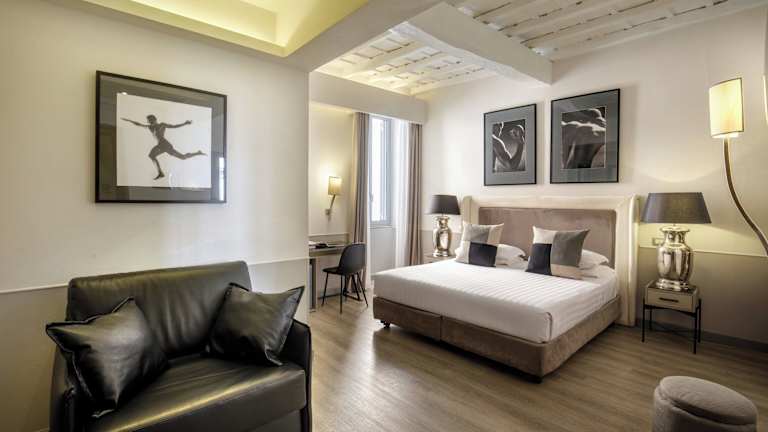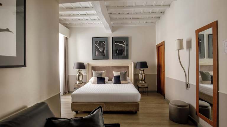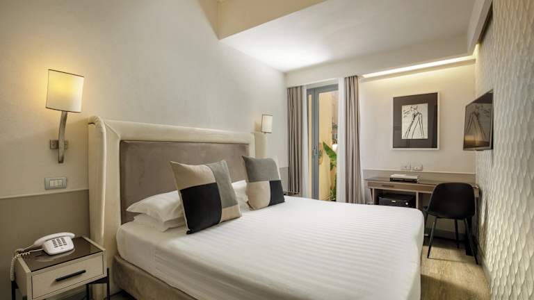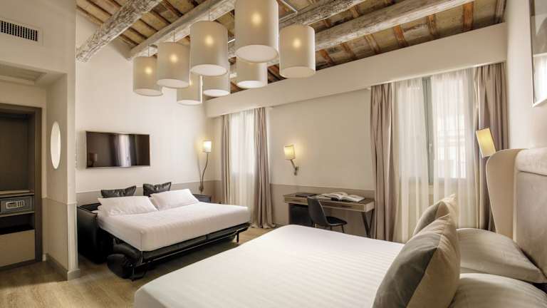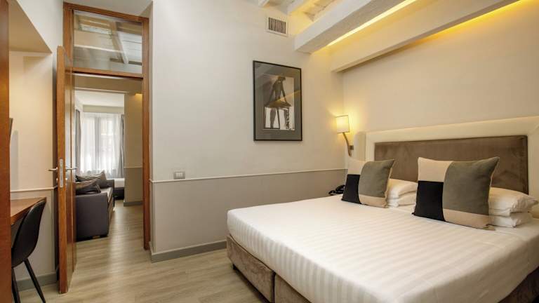 Die Zimmer im Condotti Palace sind geräumig und elegant eingerichtet. Sie verfügen über kühle Fliesenböden und bieten eine angenehme Atmosphäre für Ihren Aufenthalt. Zur Ausstattung gehören ein eigenes Bad mit Dusche, kostenfreies WLAN, ein LCD-TV und eine Minibar. Jedes Zimmer ist sorgfältig gestaltet und bietet Komfort und Entspannung nach einem langen Tag in der Stadt.